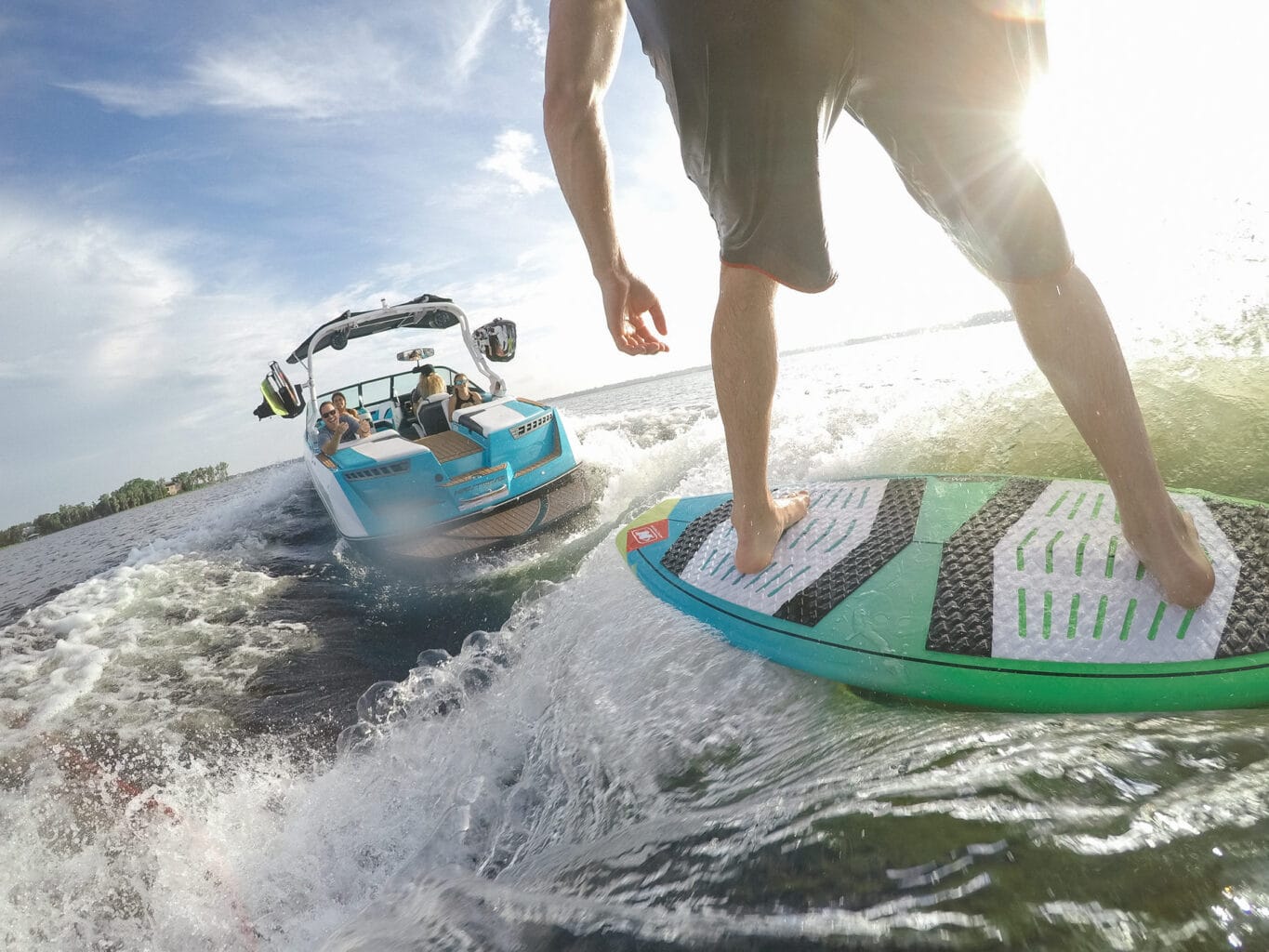 אנו מציעים מגוון סוגי גלישה מאחורי סירה על גבי גל שהסירה מייצרת.